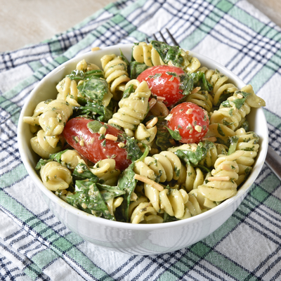 Serviere sie auf einem Teller zusammen mit frischem Basilikum und Pinienkernen